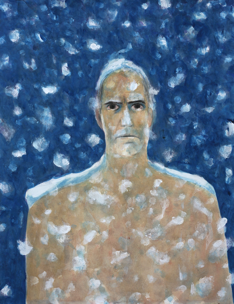 C’est pendant l’hiver 2021, un hiver sous le signe du Covid, que j’avais peint cet autoportrait. Souvenir vif et pourtant presque irréel d’un monde figé par une hibernation sanitaire qui nous renvoyait à nos solitudes respectives.